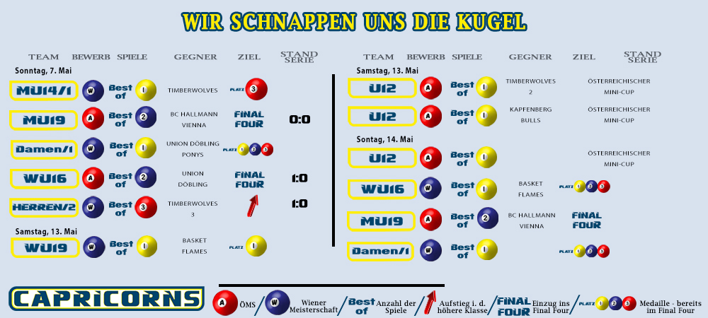 Die Details zu allen Spielen findet Ihr unter Capricorns - Spieltermine.