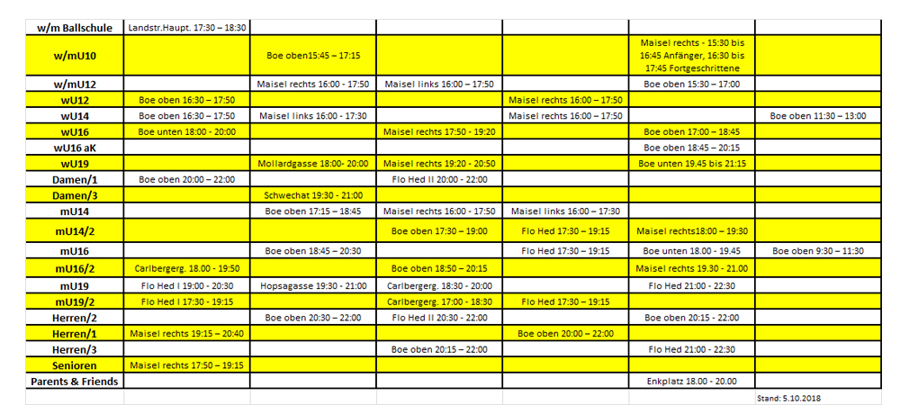 Mit einigen Änderungen und zusätzlichen Zeiten. Für manche Teams ist die Einteilung weiterhin weit weg von einem Idealzustand, dafür aber zumindest mit fast ausreichenden Hallenzeiten.